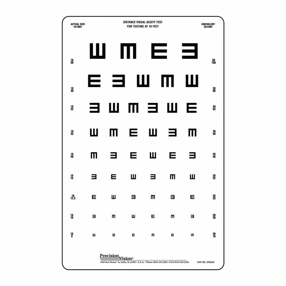 چارتهای مخصوص فاصله کوتاه (۱ متر) نیز برای فضاهای کوچک طراحی شدهاند.